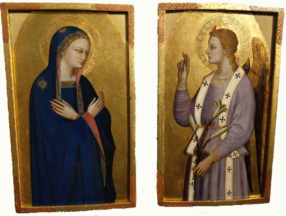 Le fond en or, la perspective encore balbutiante qui donne à voir une profondeur peu cohérente, renvoient au monde gothique dans lequel le peintre florentin s’est formé. Et les visages et les expressions hésitent entre le respect d’un modèle conventionnel et la recherche d’une vraisemblance figurative plus inventive. On reconnaît les éléments typiques de la scène de l’Annonciation : le lys et le vase, symbole de pureté, et la colombe de l’esprit saint. Les ailes de l’ange se distinguent par un raffinement de coloris remarquable ; « Je n'ai jamais vu d'anges ni de déesses, Voilà pourquoi je n'en peins pas. » disait Gustave Courbet, l’inventeur du Réalisme autour de 1855. Sans doute Lorenzo Monaco a-t-il, lui vu cette scène dans son imagination, ce qui lui permet de la donner à voir avec une précision étrange. Sur le livre que tient Marie se déchiffre le début du psaume 122 « Ad te levavi oculos meos qui habitas in coelis », « vers toi, qui habites dans les cieux, j’ai levé mes yeux ». Et le tableau se fait ainsi invitation à lire autant qu’à contempler. Il est une porte ouverte sur le ciel qu’il rend présent ici bas. Le regarder c’est prendre part à cette conversation sacrée entre Marie et le Divin, à cet échange entre Dieu et l’humanité qui est, consciemment ou non, notre vie à chacun.